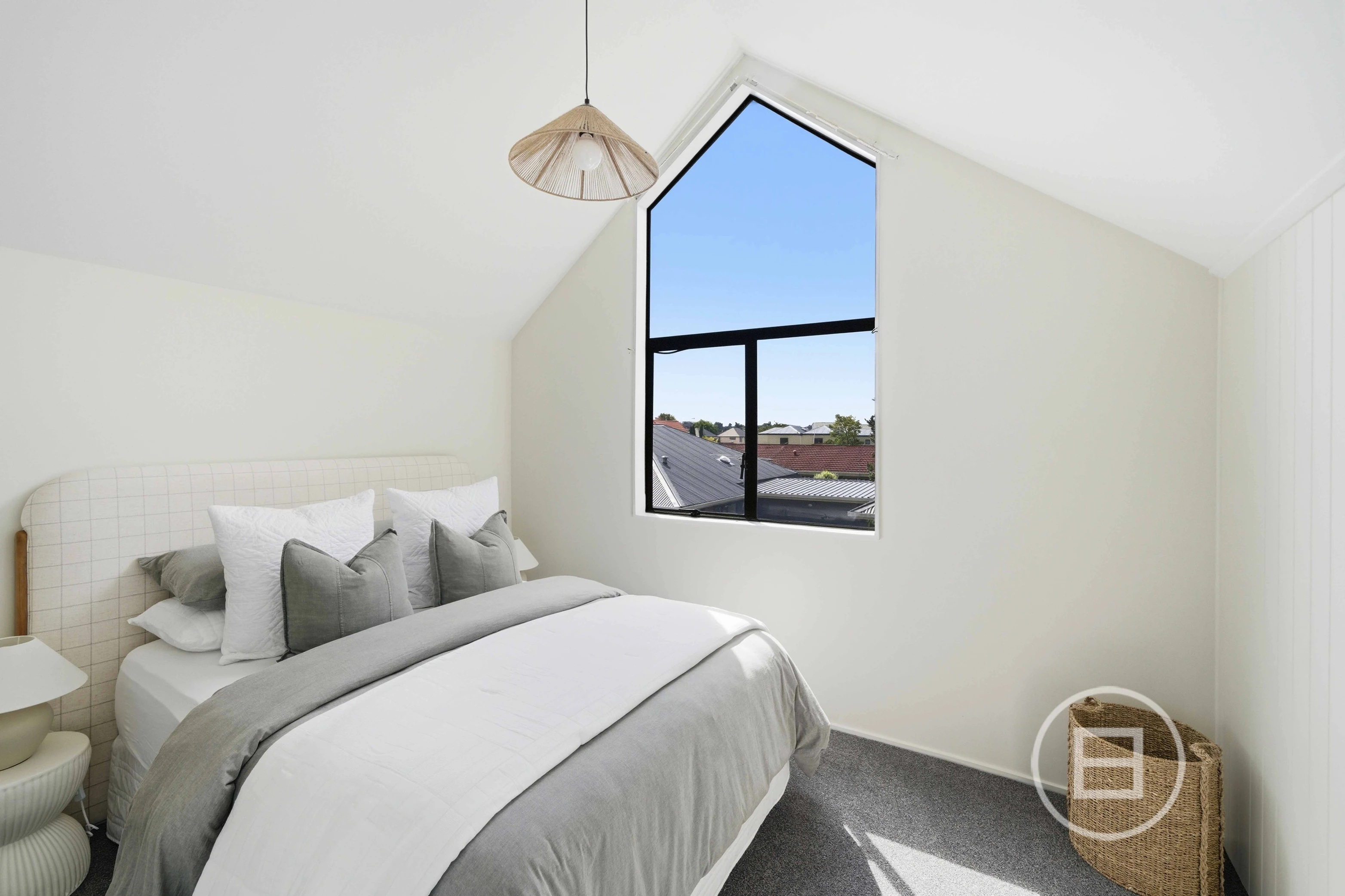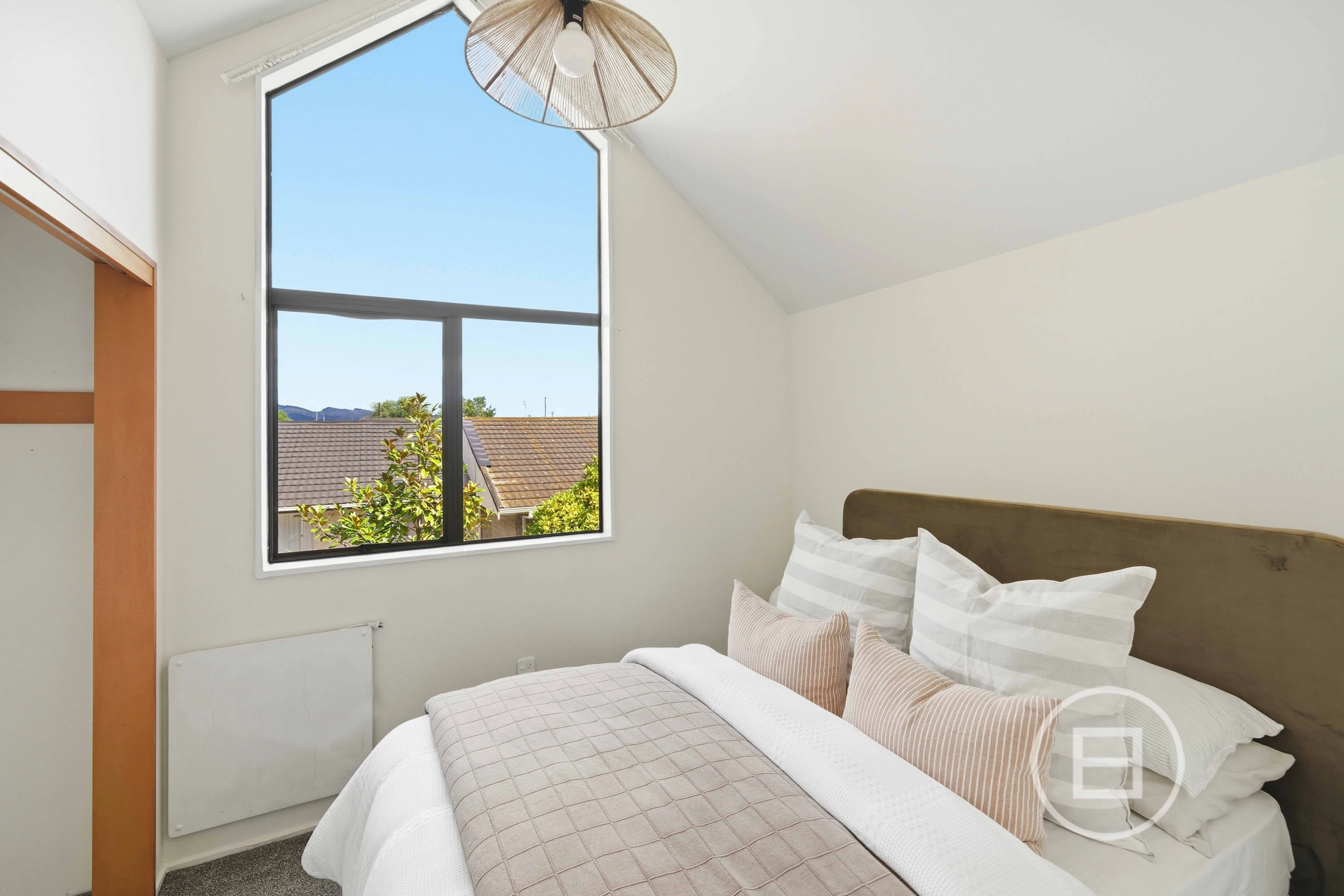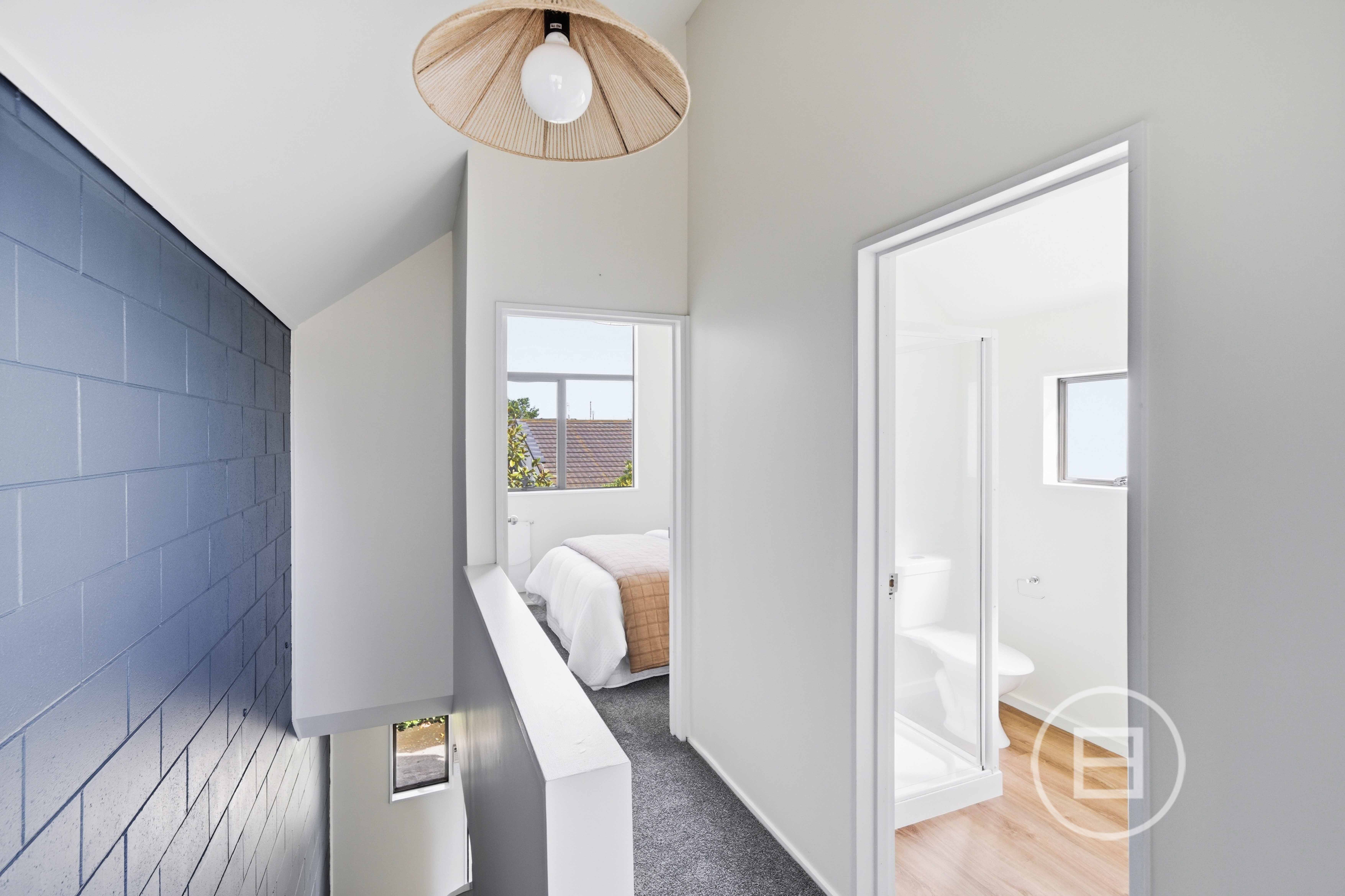 Upstairs, the bedrooms soar with high-pitched ceilings, airy and full of light, with inbuilt storage keeping the spaces uncluttered and serene. The modernized bathroom blends seamlessly with the home, mixing practicality and comfort.
